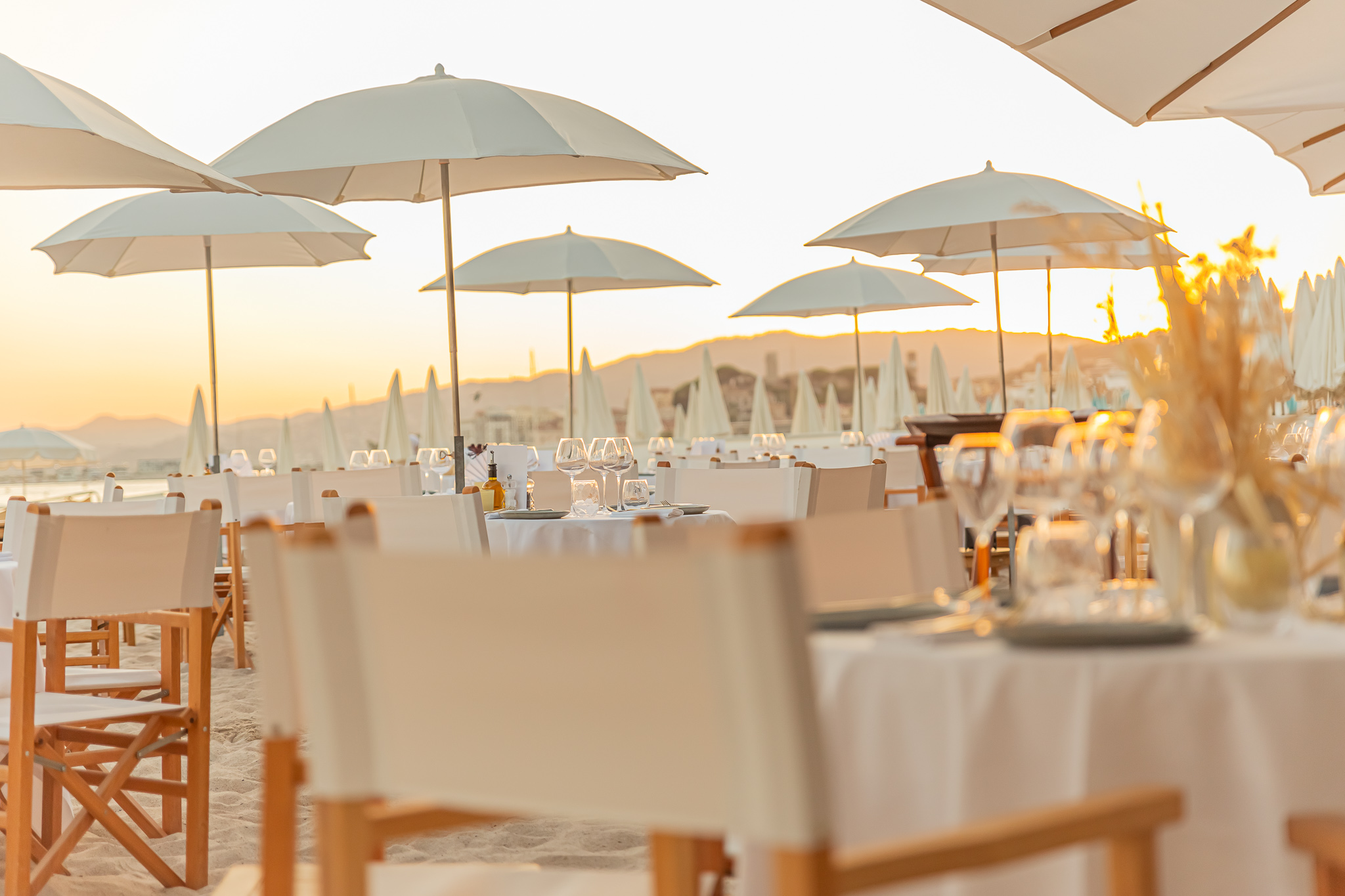 Miramar Plage est le lieu parfait pour votre évènement sur la Croisette. Avec un espace modulable de 600m2, notre plage privée peut accueillir des évènements de 40 à 1,000 personnes.